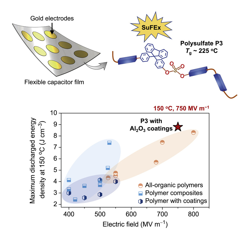 12. High performing polysulfate dielectrics for electrostatic energy storage under harsh conditions H. Li, B. Chang, H. Kim, Z. Xie, A. Lainé, L. Ma, T. Xu, C. Yang, J. Kwon, S. Shelton, L. Klivansky, V. Altoe, B. Gao, A. Schwartzberg, Z. Peng, R. Ritchie, T. Xu, M. Salmeron, R. Ruiz, K. Sharpless, P. Wu, and Y. Liu Joule (IF: 41.248) (DOI: https://doi.org/10.1016/j.joule.2022.12.010) (2023)